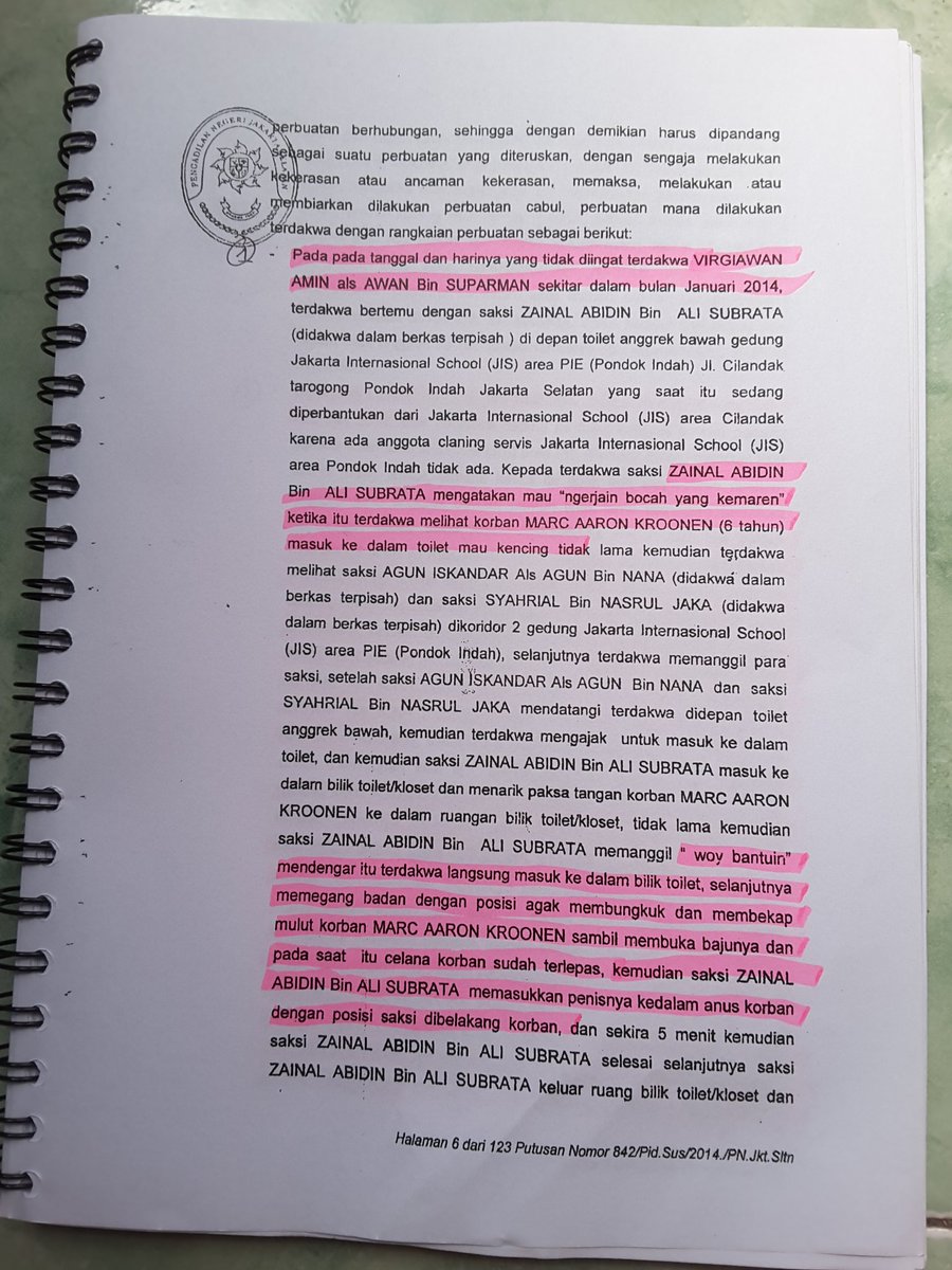 On 30 June 2014, the reconstruction of sodomy incident was held in the PIE (Kindegarten and Elementary School) JIS Pondok Indah, in the toilet to be exact.